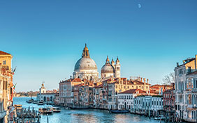 Today, journey through the Emilia-Romagna region, known for its rich culinary heritage. Stop to enjoy a delicious lunch with wine while learning about the local food culture and regional flavours. Then continue east along the autostrada to Venice, the Queen of the Adriatic. Your luxurious hotel features classic Venetian touches and offers stunning views over this romantic city.