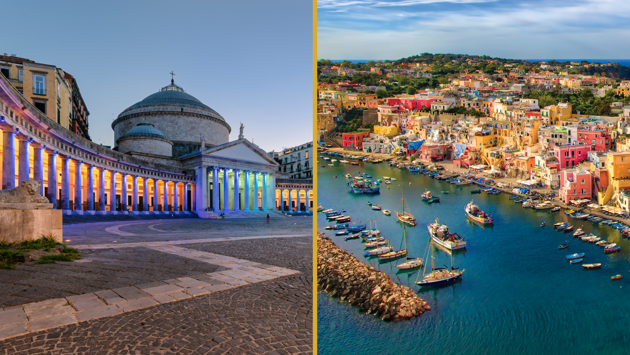 Today, it’s time to head off the island for a day trip to Procida. We suggest visiting the islands main town, Corricella, where colourful houses and a golden church cling to the hillside. This toy town is filled with local boutiques and traditional restaurants serving home grown produce. Other areas on the island worth a visit include the picturesque beaches and the historic village of Terra Murada.
