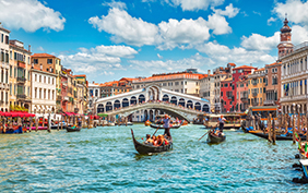 Depart Milan at a time of your choosing, and after around 2 hours 30 minutes on the train through northern Italy, you will arrive in the Queen of the Adriatic, Venice.