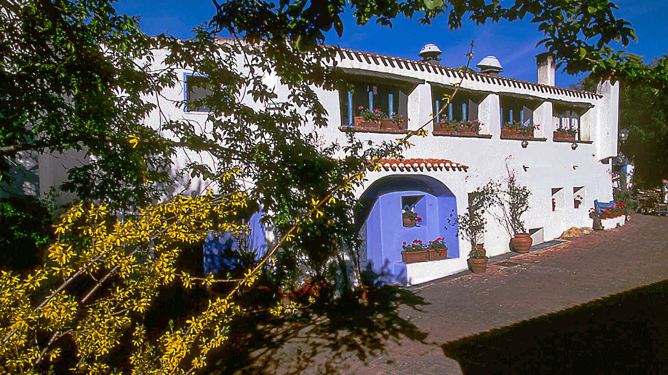 Built in a typical local style, the accommodation is in five linked buildings connected by a series of steps. Each guest room is unique, many featuring exquisite furniture, tapestries and fantastic colour schemes. A spring-fed swimming pool, outdoor whirlpool, an 18-hole mini-golf course and a tennis court are set in the lovely gardens.