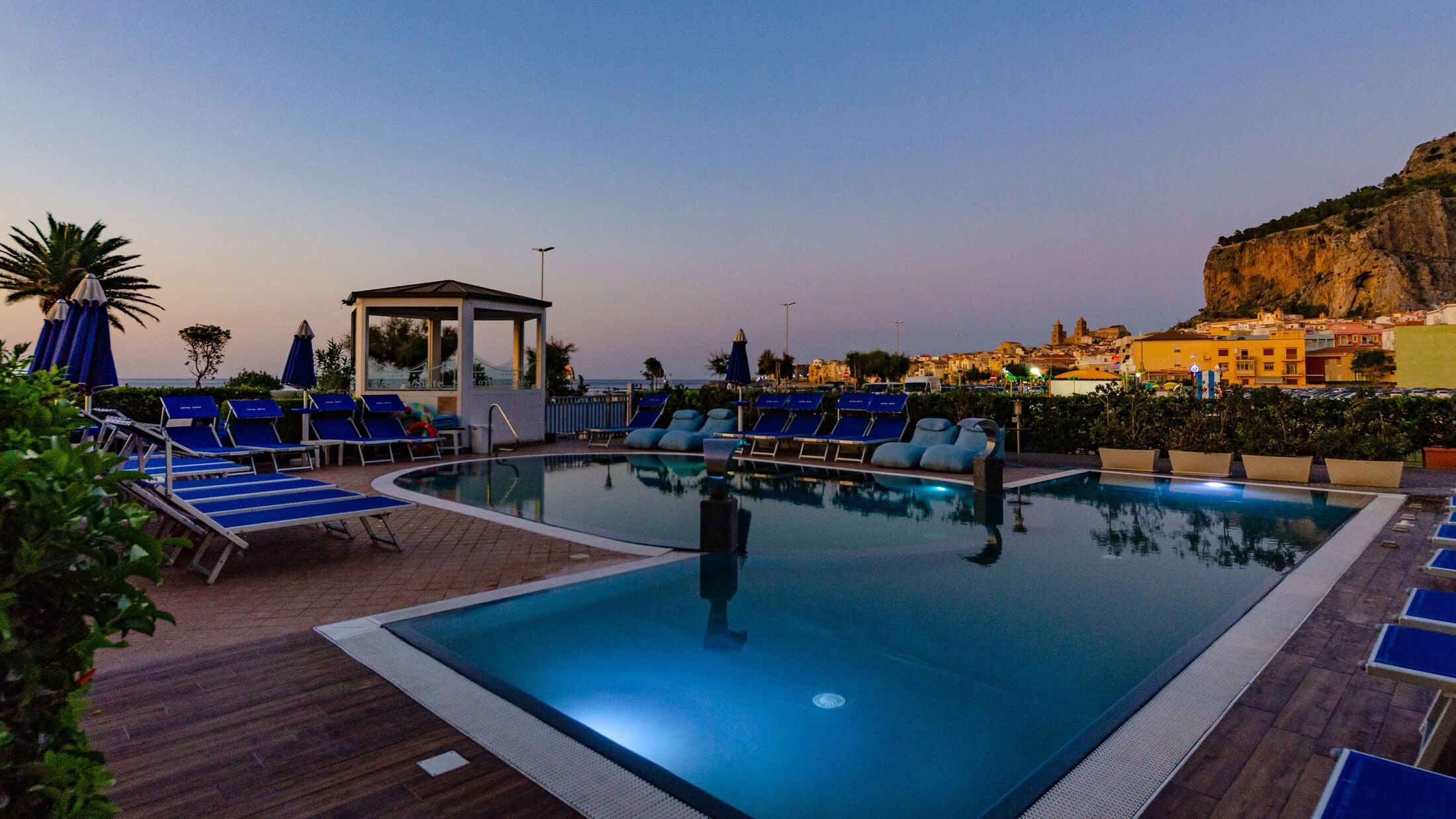 Situated just metres from the beach of Cefalù, the Astro Suite Hotel offers the perfect blend of seaside relaxation and proximity to cultural immersion. With direct access to the wide sandy beach and sparkling Tyrrhenian Sea, the hotel provides stunning panoramic views to make the most of Sicily’s charm. Just a short stroll away lies the historic heart of Cefalù, a treasure trove of history, where you can explore the Lavatoio, a restored laundry house dating back to 1514, the UNESCO-listed Cathedral of Cefalù, and the fascinating Mandralisca Museum. Surrounded by vibrant restaurants, cosy cafes, and bustling bars, the hotel is ideally placed for sampling local cuisine and nightlife. When not out exploring, guests can enjoy the large outdoor swimming pool and a hot tub before unwinding at the lobby bar.