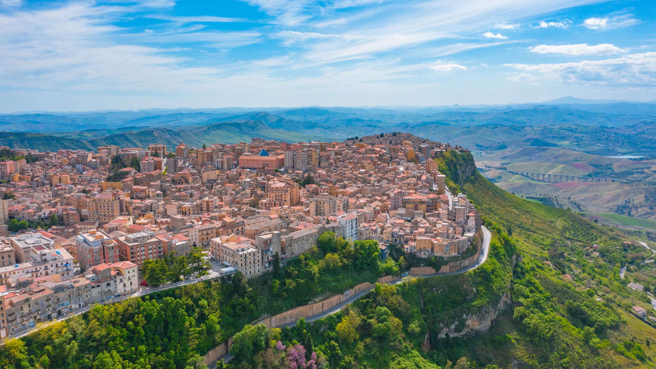 Enna is an impregnable fortress town which holds the crown for being Sicily’s highest (over 900 metres) provincial capital, and therefore offers countless vistas across the fertile landscape. Many of Enna’s main attractions are grouped together in the old town, spread between the ancient streets that connect to the Via Roma. The Piazza Crispi has spectacular views of Calascibetta, a quiet town sitting at a lower altitude in the distance; a walk to the south-east end of Enna will enable you to view another picturesque commune of Vizzini. The unquestionable focal point, however, is the huge landmark of Castello di Lombardia – a 13th century castle, famous for its outstanding panoramas of Etna and the majority of Sicily’s mountain peaks.
