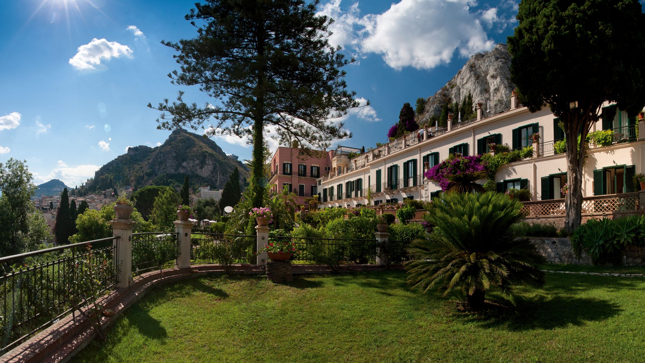 The Grand Hotel Timeo, A Belmond Hotel dates back to 1873 and successfully recreates the atmosphere and splendour of a bygone era. Taormina’s first hotel is surrounded by luxurious parkland filled with olive and cypress trees, magnolias and bougainvillea.