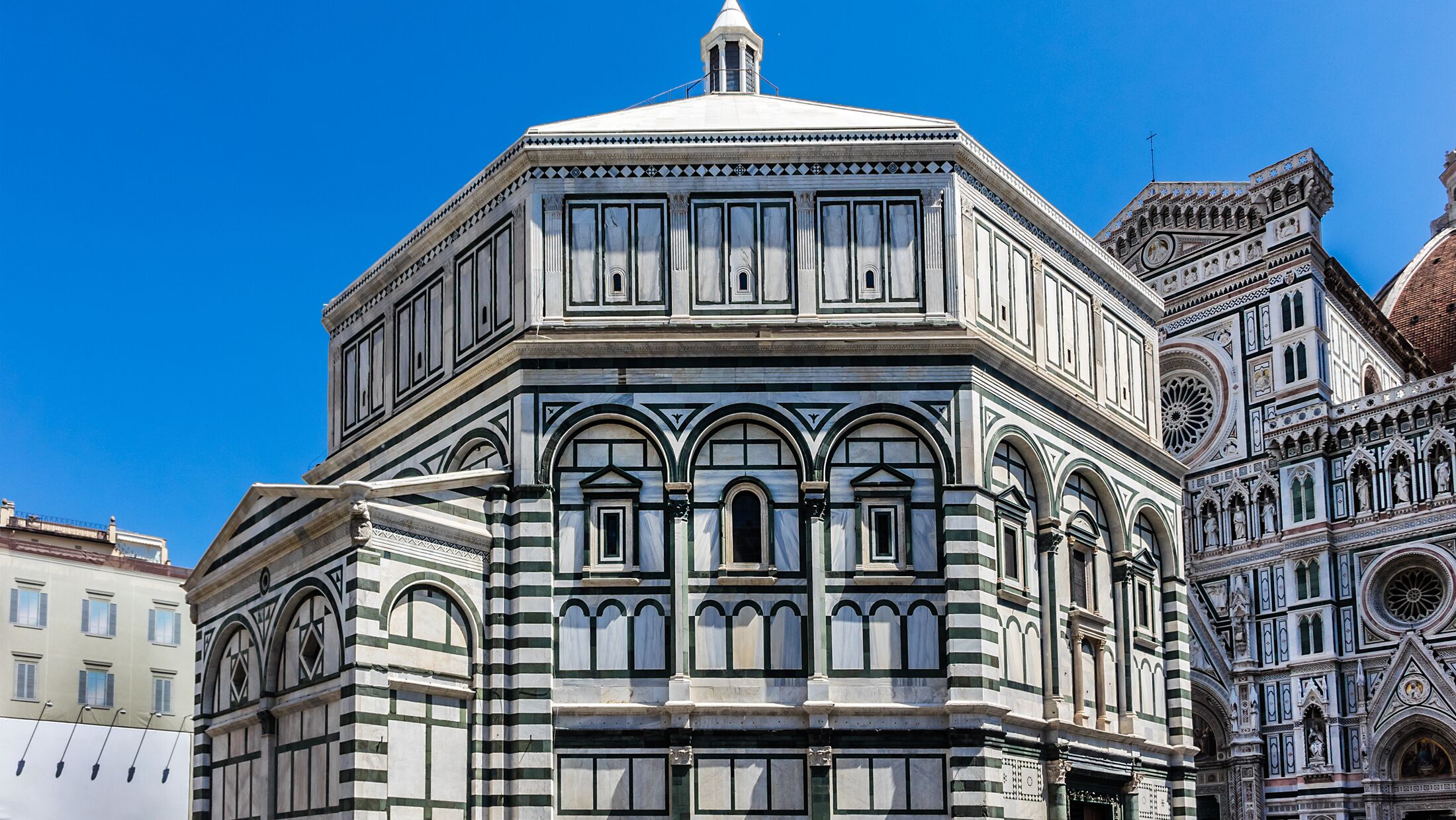 Despite this impressive heritage, the Baptistery is best known for its three sets of incredible carved bronze doors – considered to be some of the Florence’s finest artworks. Andrea Pisano’s first set was produced in the 14th century, and was revealed to all-round acclaim. However, the second and third sets, sculpted by peer Lorenzo Ghiberti, are often thought to be the finest features of the Florence Baptistery, and were named by Michelangelo himself as the ‘Gates of Paradise’. Step inside, and you’ll find scenes equally astounding: elaborate marble floors shine beneath one of the world’s most impressive ceiling mosaics, adorned with thousands of gilded tiles that form frescoes rivalling those of the Duomo.